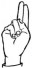 На ћирилици написано БОГИЊА ЦРНОГОРАЦ састоји се из 15 слова [?]. Исписано ћириличном једноручном азбуком за глувонеме: